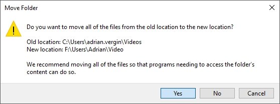 Finally, you will be asked if you want to move all your existing files to the new location. Click ‘Yes’ and wait for the move operation to complete: